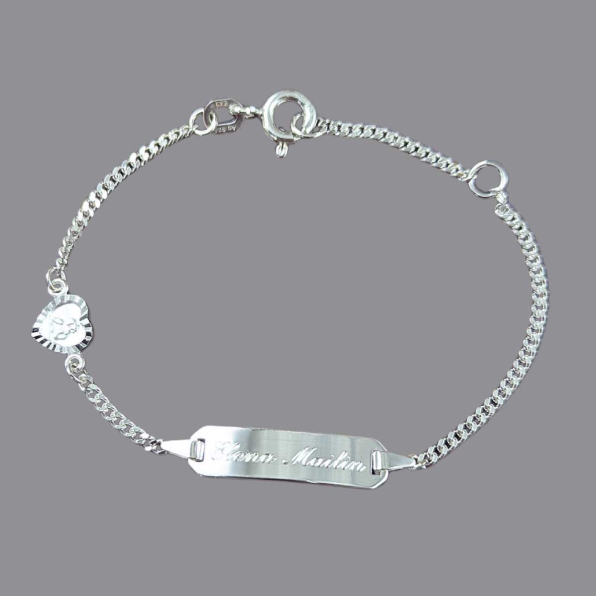 Kinderarmband im Panzermuster mit Gravur und süßem Schutzengel im Herz