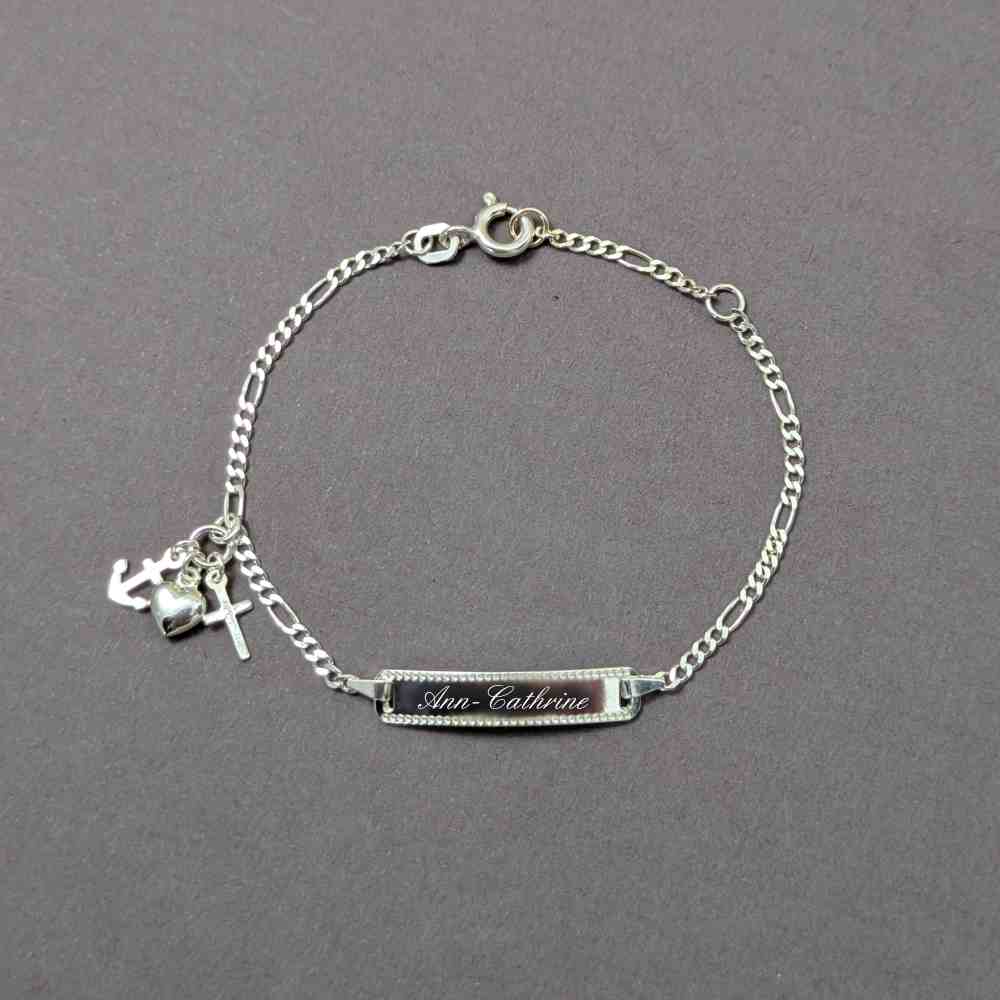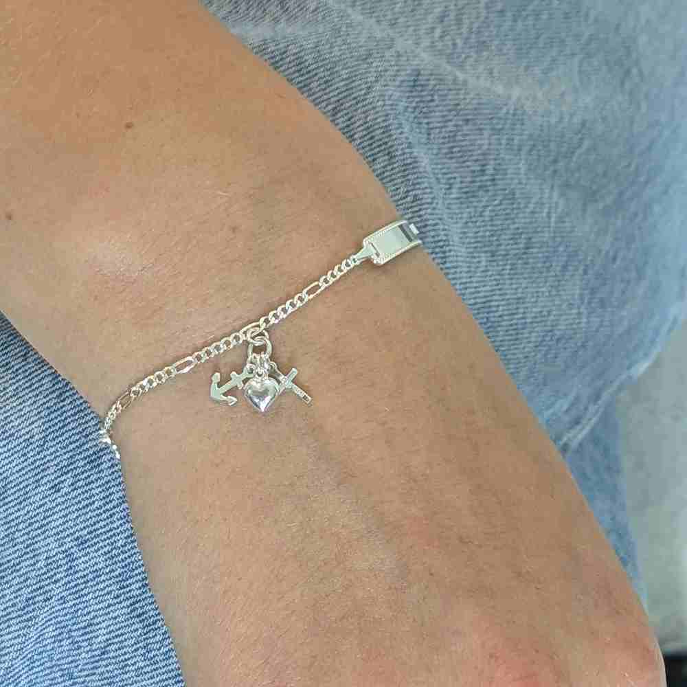 Startseite » Schmuck zur Kommunion & Konfirmation » Namensarmband Silber 925 Glaube Liebe Hoffnung 16 cm mit Gravur